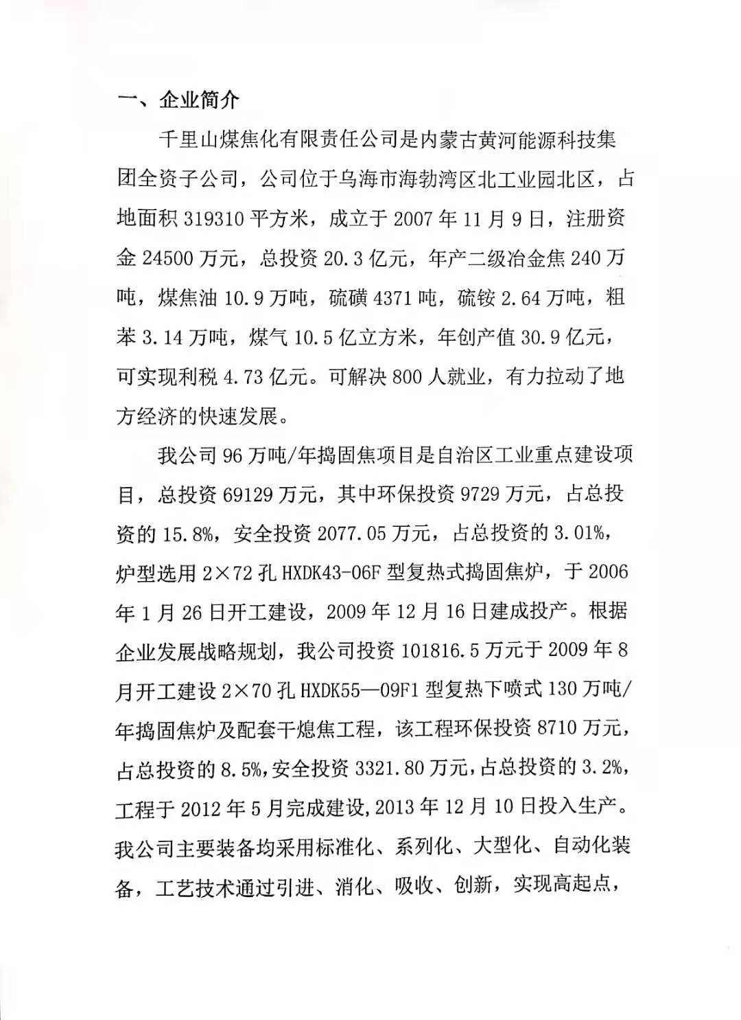內蒙古黃河工貿集團千里山煤焦化有限責任公司社會責任報告