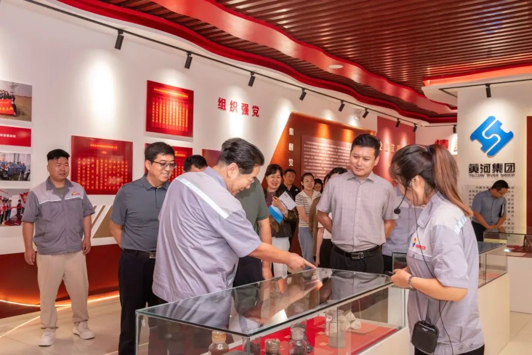 在調研過程中,商井民部長一行參觀了黃河集團黨群服務中心,詳細了解了企業黨的建設、經營狀況、業務板塊、發展規劃等情況,在與企業領導的溝通交流中,就企業黨建陣地建設、黨員管理、黨員發展、黨建展廳等方面提出了一些問題并聽取了企業負責人的解答,同時對黃河集團黨建展廳的打造給予了高度肯定,并且在企業概況、企業黨建板塊等地駐足點評,極大地肯定了黃河集團黨建工作與公司發展相融互促,“生產經營拓展到哪里,黨的基層組織建設就延伸到哪里,黨員作用就發揮到哪里”的發展思路。
