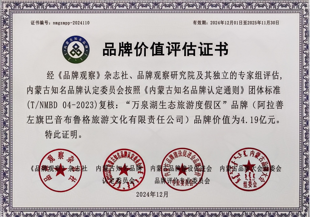此外,黃河集團旗下的萬泉湖旅游度假區以4.19億元的品牌價值成功入圍自治區知名(優秀)品牌榜單。這標志著萬泉湖旅游度假區在打造特色旅游產品和服務質量提升上取得了顯著成效,成為區內旅游業的一顆璀璨明珠。